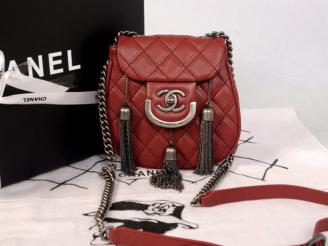 CHANEL チェーンショルダーバッグ 斜め掛け フリンジ付きバッグ 67825 棗赤